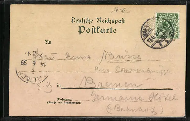 gelaufen 1899, Eckknick oben rechts, guter Zustand