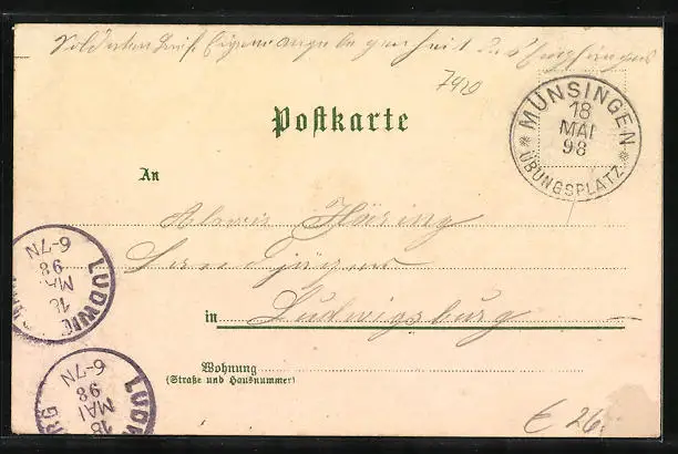 gelaufen 1898, rückseitig Oberflächenschaden, guter Zustand