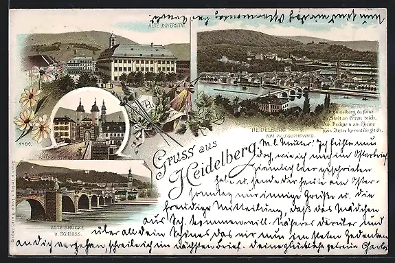 Lithographie Heidelberg, Alte Universität, Alte Brücke
