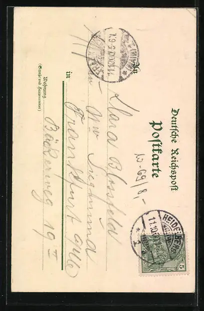 gelaufen 1900, Eckknick oben li., kl. Einriss oben Mitte, guter Zustand