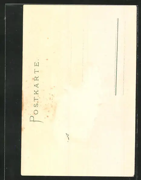 Personenbezogene Daten auf der Rückseite der Karte wurden durch blauen Textmarker unkenntlich gemacht. Die blauen Stellen sind auf die Vorderseite durchgeweicht und wirken sich negativ auf das Postkartenfoto aus