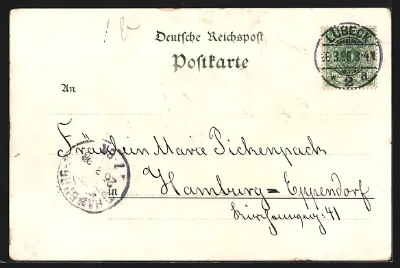 gelaufen 1898, Abriebspuren unten rechts und links, guter Zustand