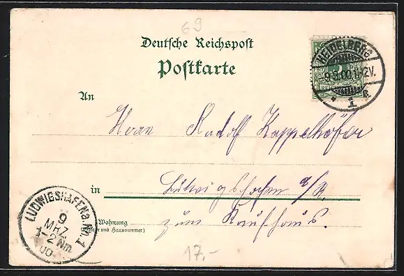 gelaufen 1900, Eckknick oben re., Stempelspur, guter Zustand