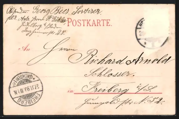 gelaufen 1899, Briefmarke entfernt, rückseitig Oberflächenschaden, guter Zustand