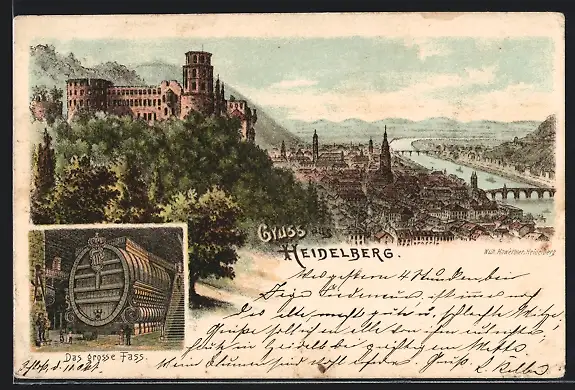 Lithographie Heidelberg, Panorama, Das grosse Fass