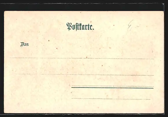 Personenbezogene Daten auf der Rückseite der Karte wurden durch blauen Textmarker unkenntlich gemacht. Die blauen Stellen sind auf die Vorderseite durchgeweicht und wirken sich negativ auf das Postkartenfoto aus