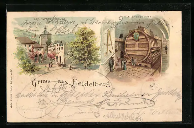 Lithographie Heidelberg, Ruprechtsbau, das grosse Fass