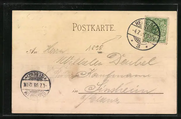 gelaufen 1898, Stempelspur, sonst guter Zustand