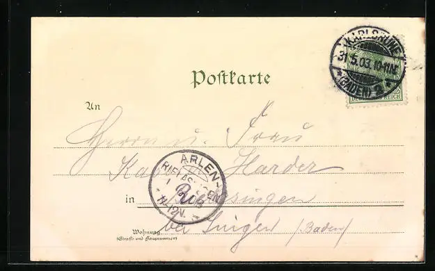 gelaufen 1903, kl. Einriss re., guter Zustand