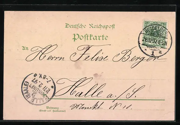 gelaufen 1897, Eckknick li. unten, guter Zustand
