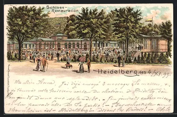 Lithographie Heidelberg, Schlossrestauration mit Terrasse