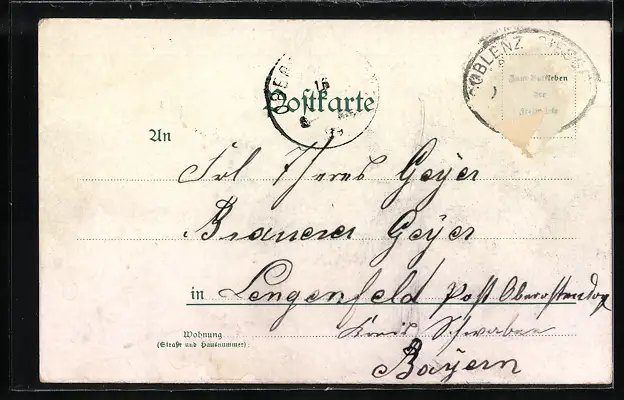 gelaufen, Briefmarke entfernt, rückseitig Oberflächenschaden, guter Zustand