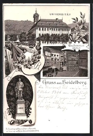 Lithographie Heidelberg, Universität, Scheffel Denkmal