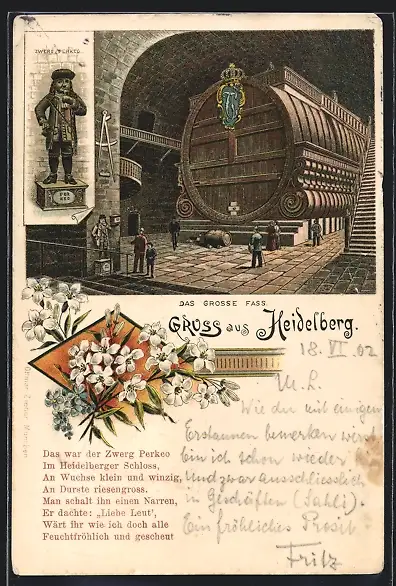Lithographie Heidelberg, Zwerg Perkeo, Das grosse Fass