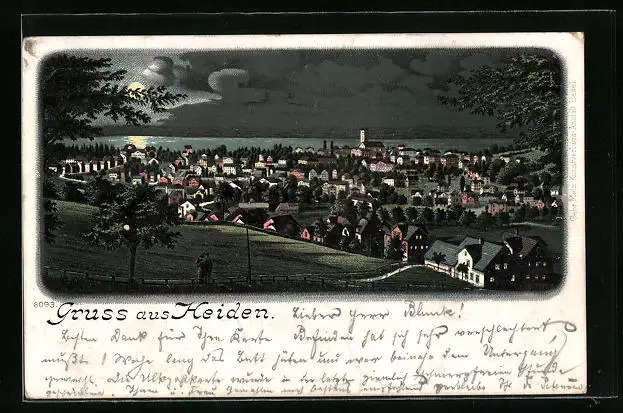 Lithographie Heiden, Ortsansicht aus der Vogelschau