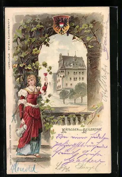 Lithographie Heilbronn, Käthchen von Heilbronn, Wein, Wappen