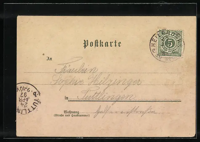 gelaufen 1897, Eckknick oben links, guter Zustand