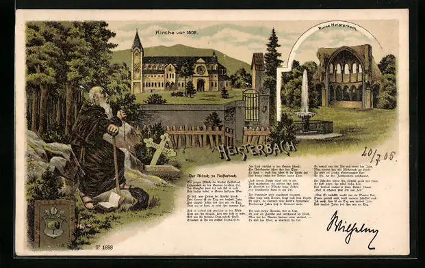 Lithographie Heisterbach, Ruine und Kirche vor 1808