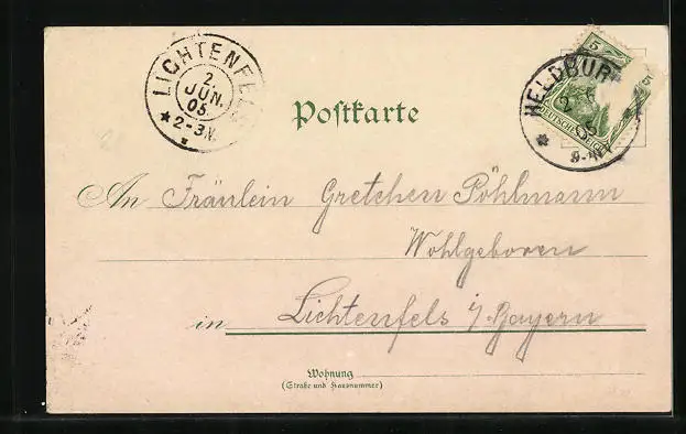 gelaufen 1905, Briefmarke entfernt, Stempelspur, guter Zustand