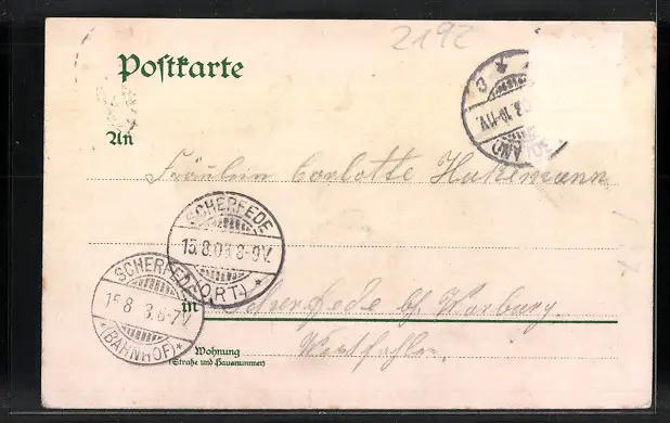 gelaufen 1903, Briefmarke entfernt, rückseitig Oberflächenschaden, guter Zustand