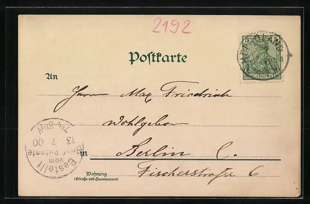 gelaufen 1900, kl. Eckschaden unten li., guter Zustand