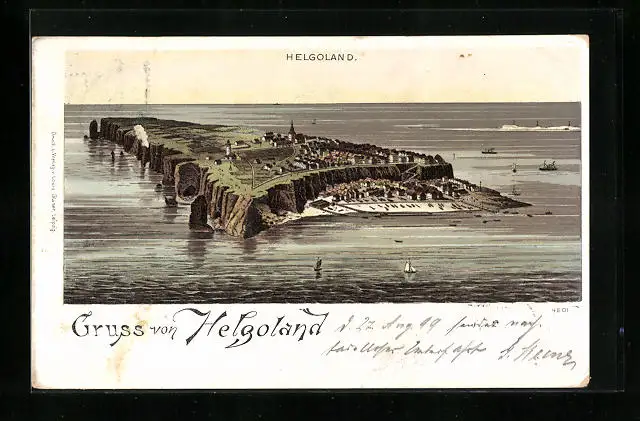 Lithographie Helgoland, Gruss mit Inselpanorama