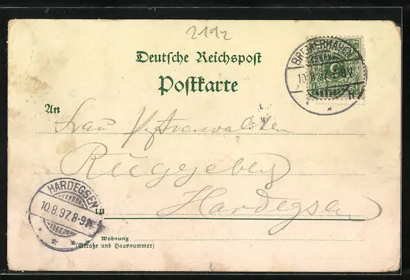 gelaufen 1897, Ecken bestoßen mit Abriebspuren, guter Zustand