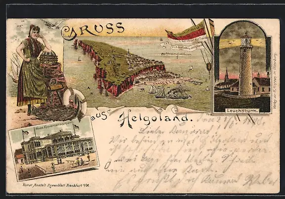 Lithographie Helgoland, Neues Konversationshaus, Leuchtturm