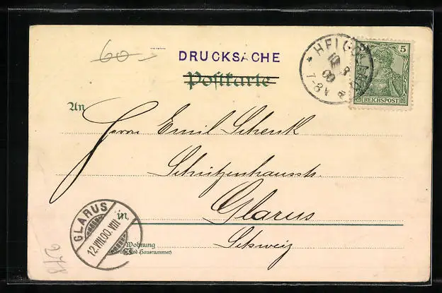 gelaufen 1900, Eckknick re. unten, guter Zustand