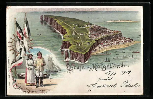 Lithographie Helgoland, Totalansicht, Helgoländer