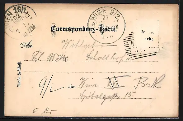 gelaufen 1898, Briefmarke entfernt, rückseitig Oberflächenschaden, guter Zustand