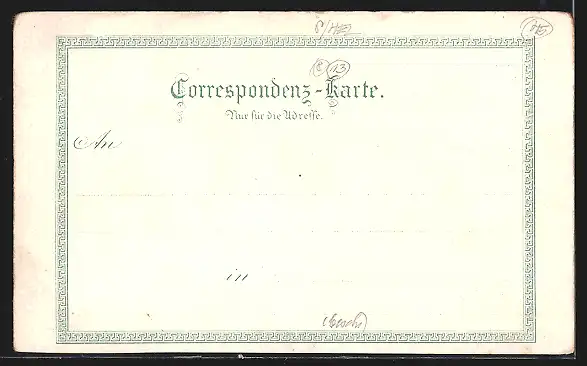 Personenbezogene Daten auf der Rückseite der Karte wurden durch blauen Textmarker unkenntlich gemacht. Die blauen Stellen sind auf die Vorderseite durchgeweicht und wirken sich negativ auf das Postkartenfoto aus
