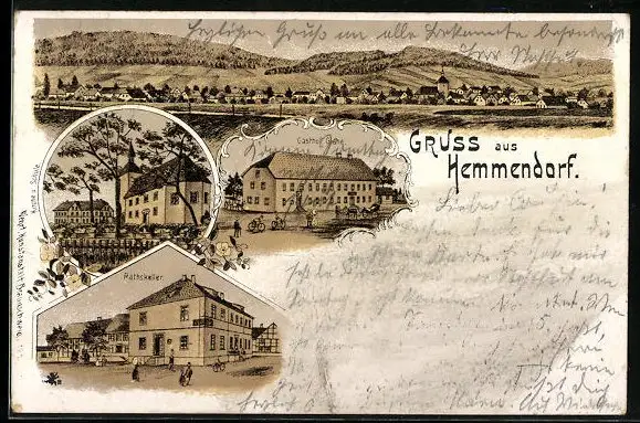 Lithographie Hemmendorf, Gasthaus Rathskeller, Gasthaus Glahe, Gesamtansicht
