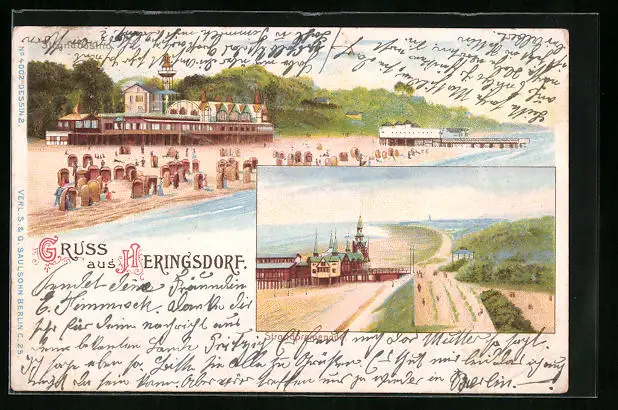 Lithographie Heringsdorf, Strandcasino, Strandpromenade