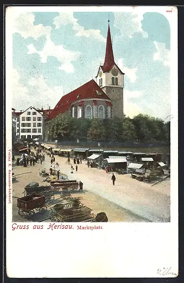 Lithographie Herisau, Marktplatz