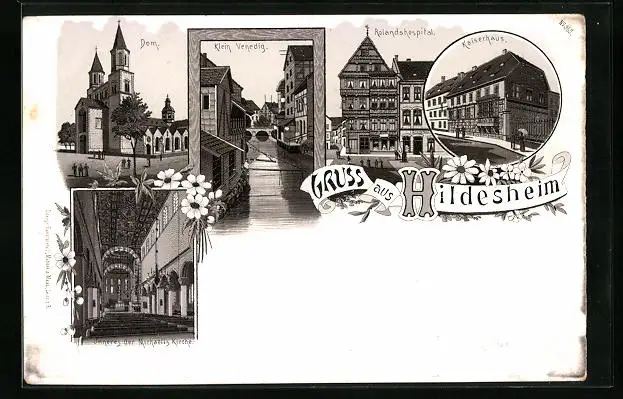 Lithographie Hildesheim, Dom, Klein Venedig, Kaiserhaus