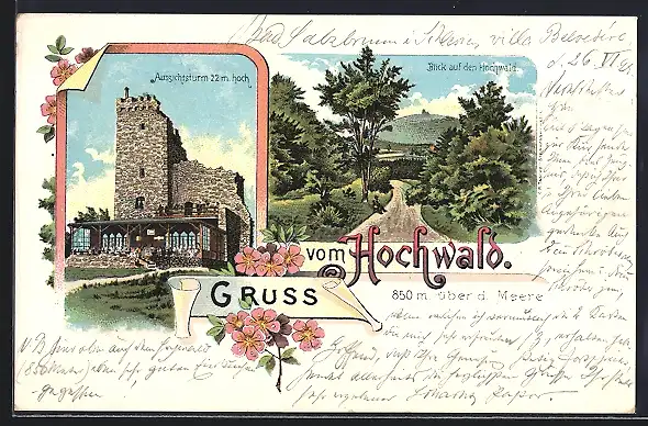Lithographie Hochwald, Panorama, Aussichtsturm