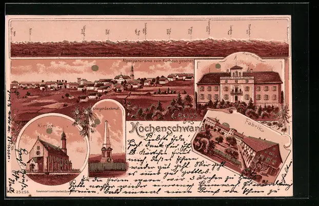 Lithographie Höchenschwand, Fabrik, Kurhaus, Kriegerdenkmal, Panorama