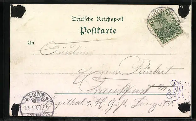 gelaufen 1900, rückseitig Klebe- und Papierreste, guter Zustand
