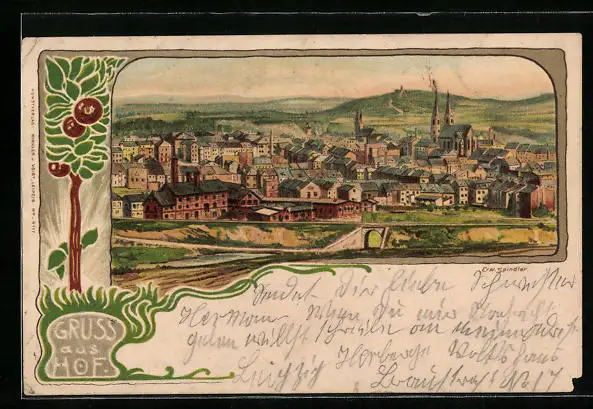 Lithographie Hof, Panoramablick auf die Stadt