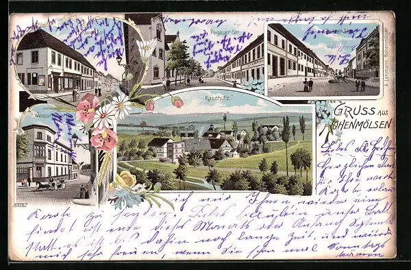 Lithographie Hohenmölsen, Lützener Str. Pegauer Str., Kaschütz