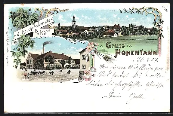 Lithographie Hohentann, Brauerei und Post Rauchenecker