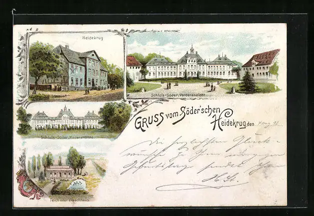 Lithographie Holle, Restaurant Söder`scher Heidekrug, Schloss