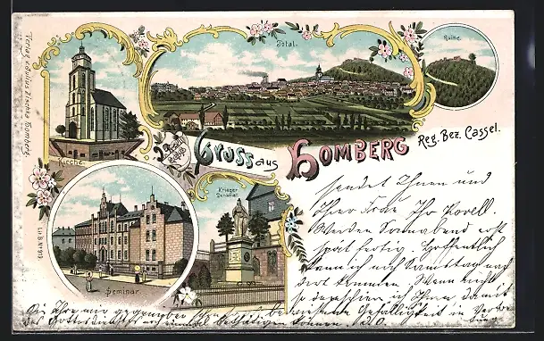 Lithographie Homberg, Kirche, Ruine, Seminar