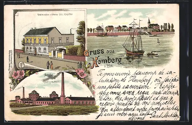 Lithographie Homberg a. Rhn., Restaurant zur Krone, Zeche Rheinpreussen
