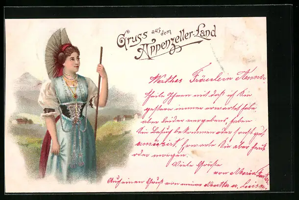 Lithographie Hübsche Frau aus Appenzeller-Land in Tracht