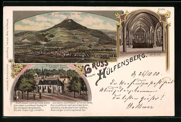 Lithographie Hülfensberg, Gesamtansicht mit Franziskanerkloster
