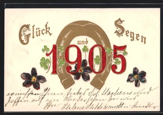 Lithographie Hufeisen bringt Glück für 1905