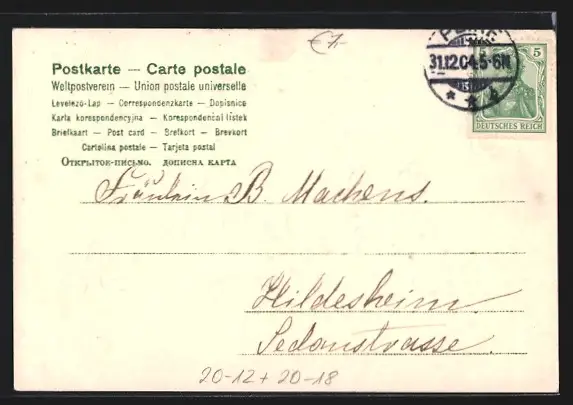 gelaufen 1904, Eckknick li. oben, guter Zustand