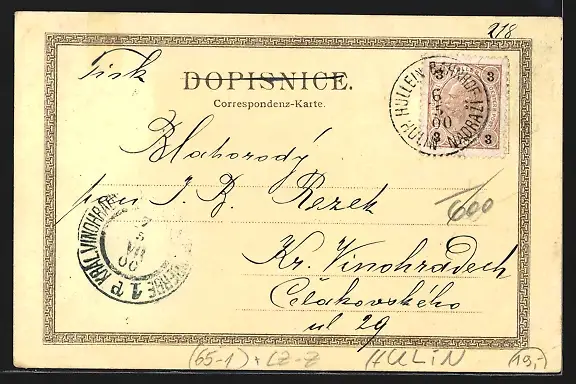 Lithographie Hulin, Narodni skola, Cukrovar, nadrazi